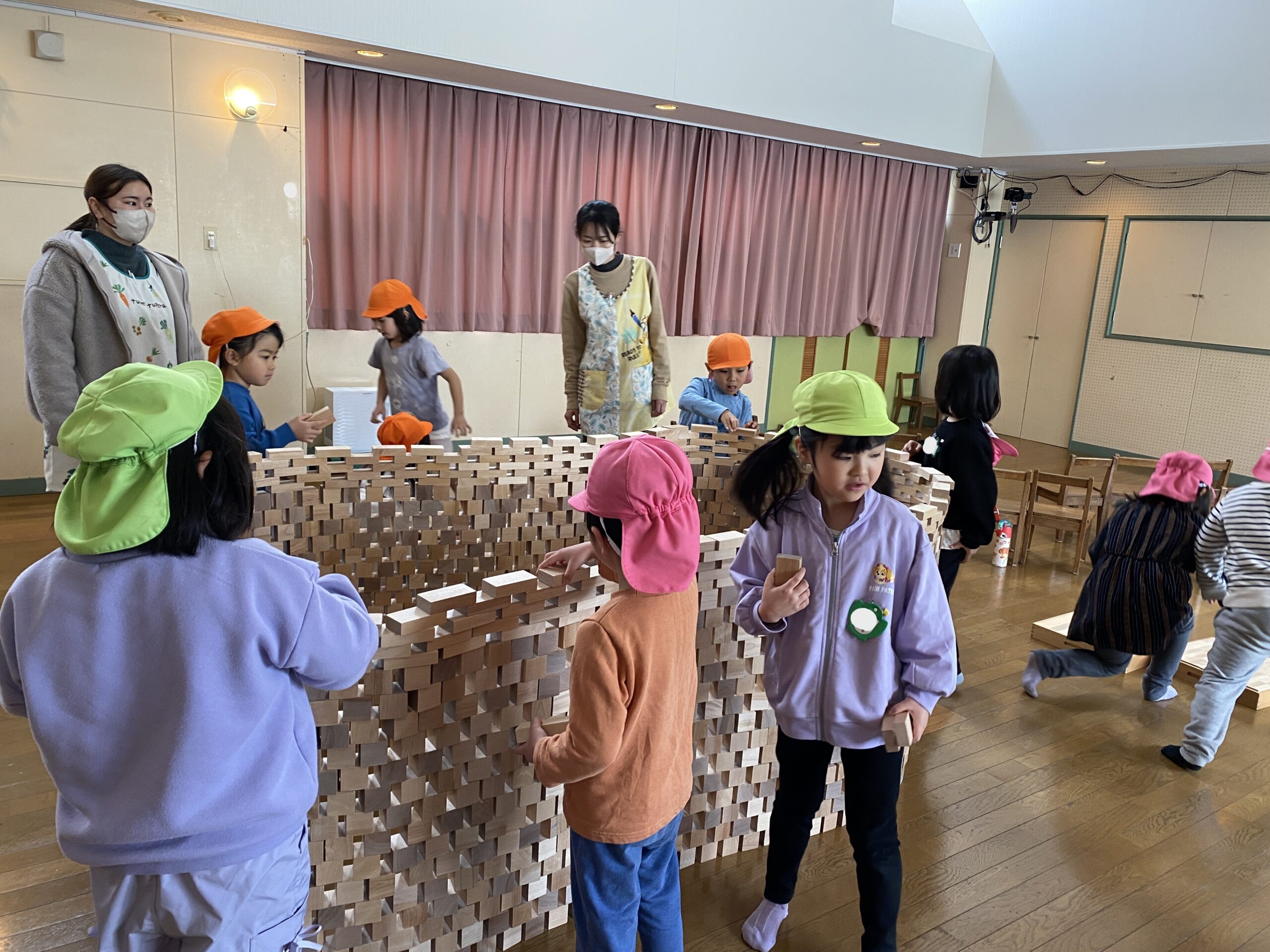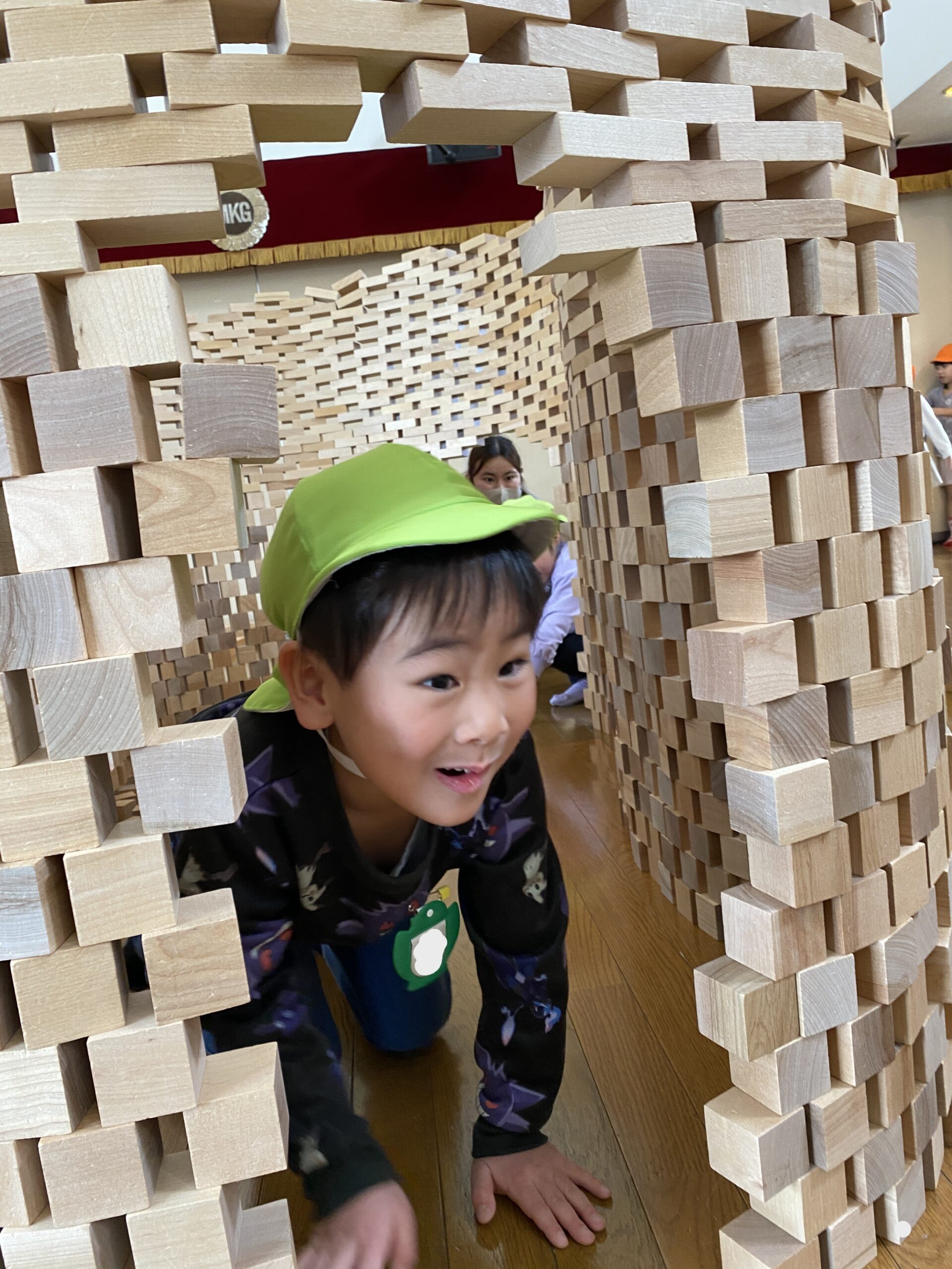 - 積み木活動では 今年も勇気が発揮されました!入口出口を作るのに積んだ積み木を抜いていくのは いつやっても心臓が高鳴るのです。