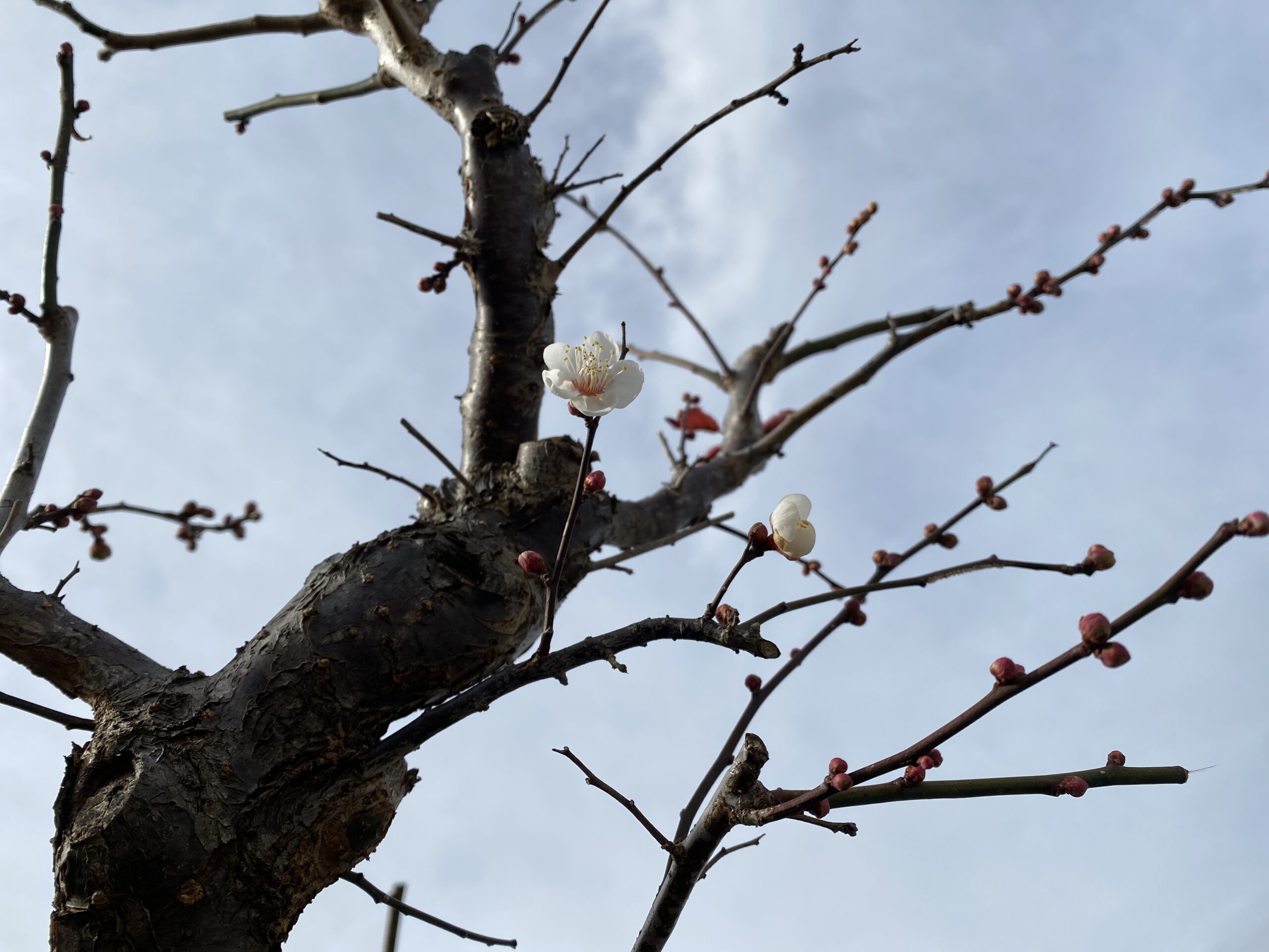 - ブランコの横で 梅の花が咲いているのを見つけた時の うれしさといったらありません。隣家はもういっぱい白梅が咲いていて そこだけ春なのでした。