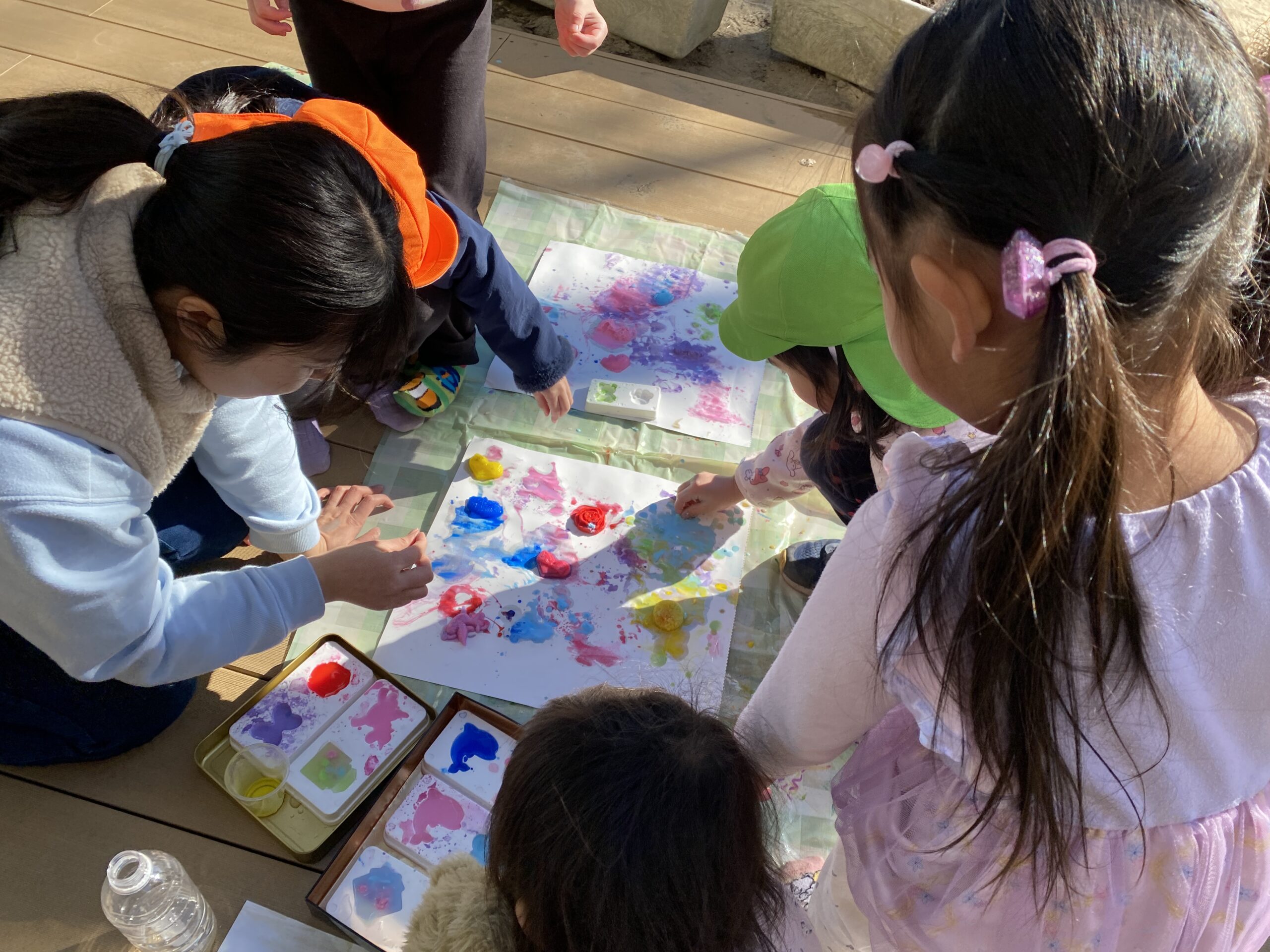 - 前の写真の作品は、これらの風船と絵の具との組み合わせで、ひとり一人のオリジナルなのです。