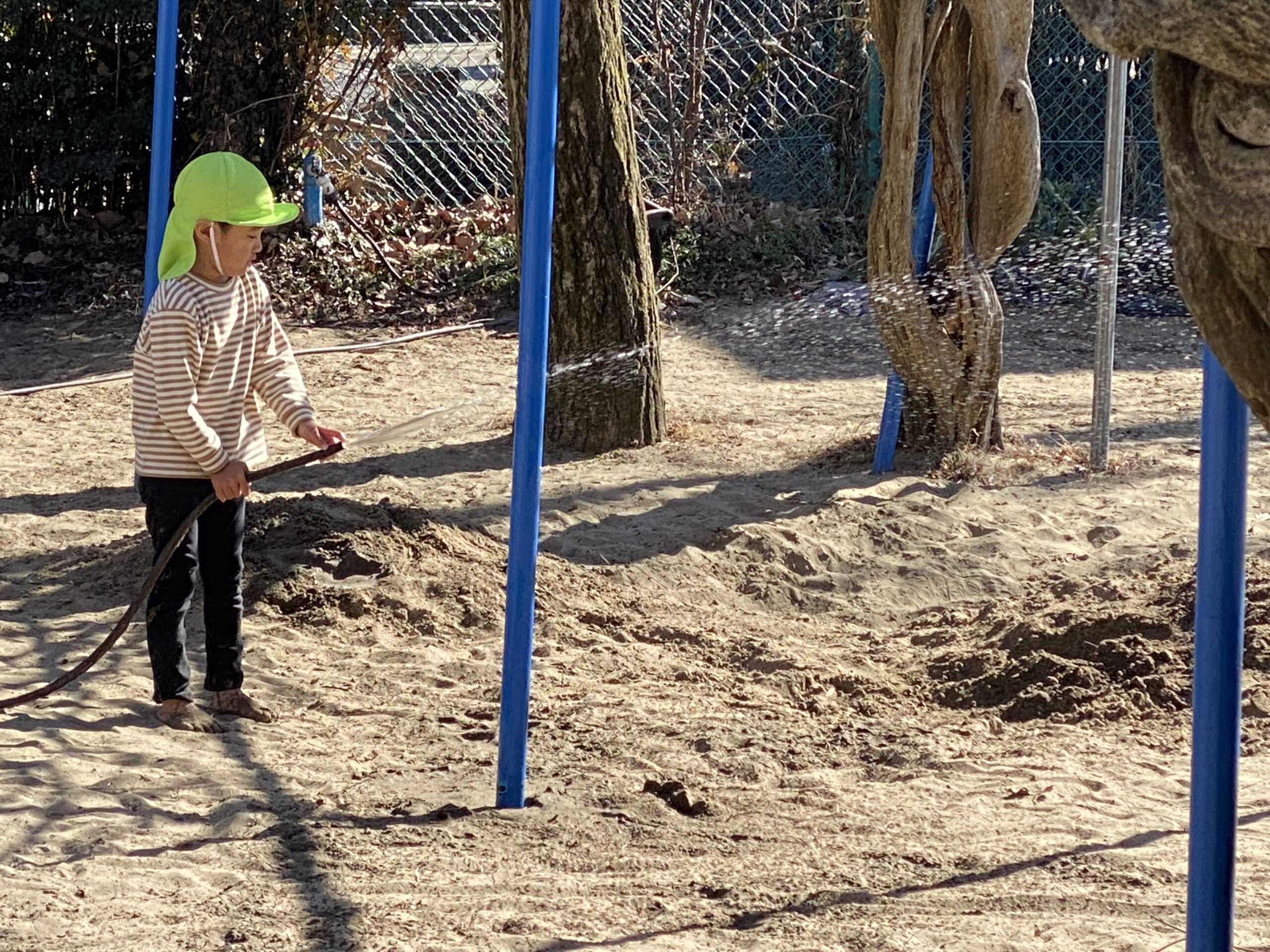 - 空気が乾燥しすぎていていますね。井戸水は凍らないので、指先で水圧を調整しながら遊べるんです。