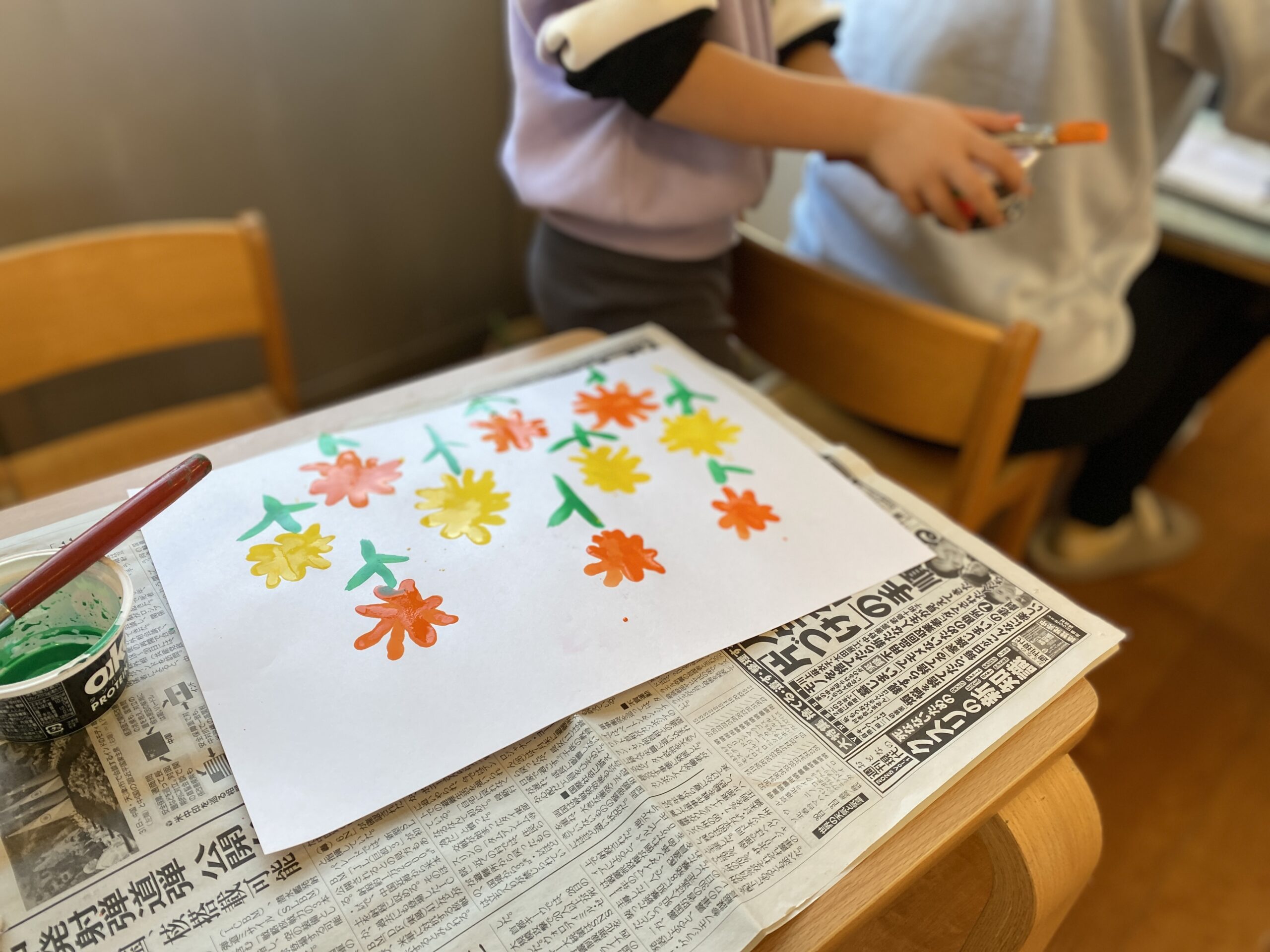 筆で指にえのぐをつけて、絵を描く姿。春が待ち遠しい1月末。