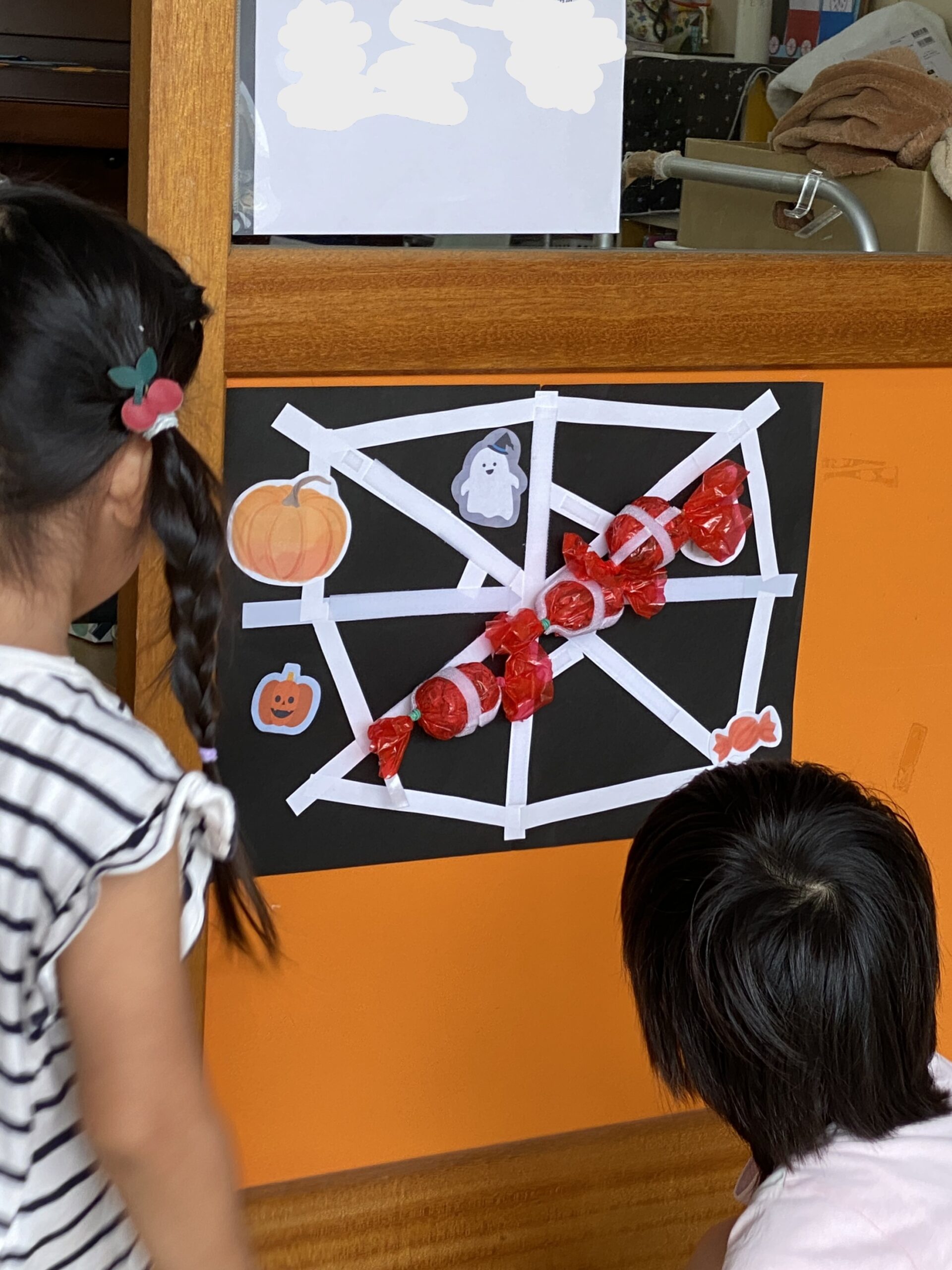 - 役員さん作のハロウィンの遊び道具。キャンディ投げたら こうなる!