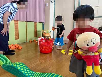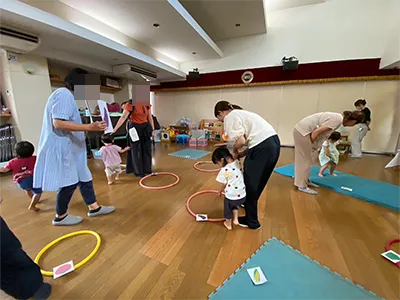 親子で触れ合い遊びをしたり、簡単なゲームを楽しみました!