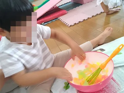 水曜コースでは寒天で遊んだ後、寒天ゼリーを実際に食べてみる機会となりました!