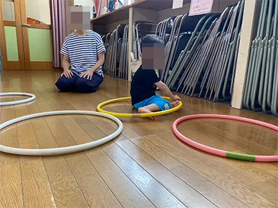 この輪っかはどうやったら楽しめるかな?と想像と感覚を働かせて。。。