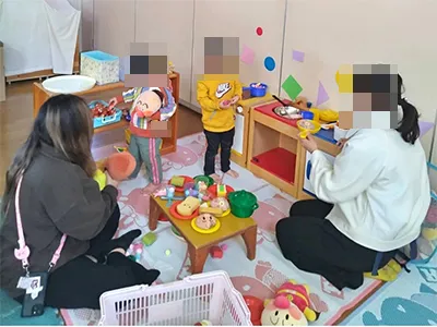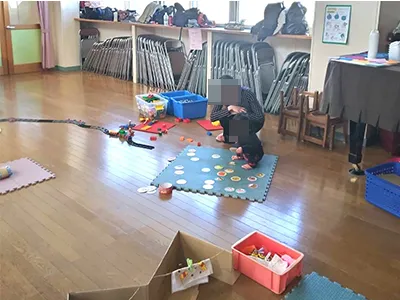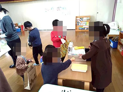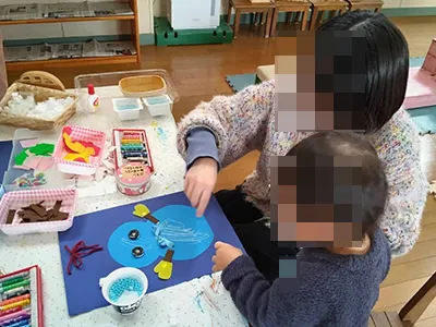 今回は今年度最後のつくしっこくらぶでした。初めは緊張して硬い表情だったお子さん達が、回を重ねるにつれて、幼稚園や保育者に慣れ、自分を出して遊べるようになっていく姿は嬉しいものでした!