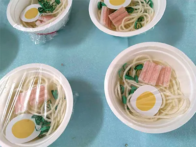 色々な素材を貼り付けて、カラフル雪だるまの完成!