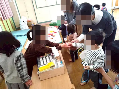 年長児さんがお店屋さんのお手伝いをしてくれて一緒に楽しみました!
